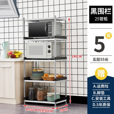 不锈钢厨房置物架落地多层微波炉烤箱放锅储物架子货架五层收纳架